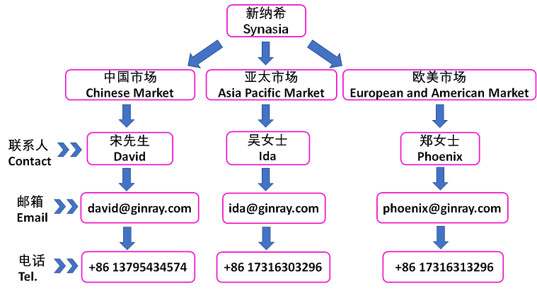 我們銷售部針對不同市場,業(yè)務有所劃分。您可以通過以下三個窗口聯(lián)系我們。