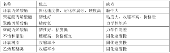 常用預(yù)聚物分為以下幾種類型,它們的性能特點也各不相同。